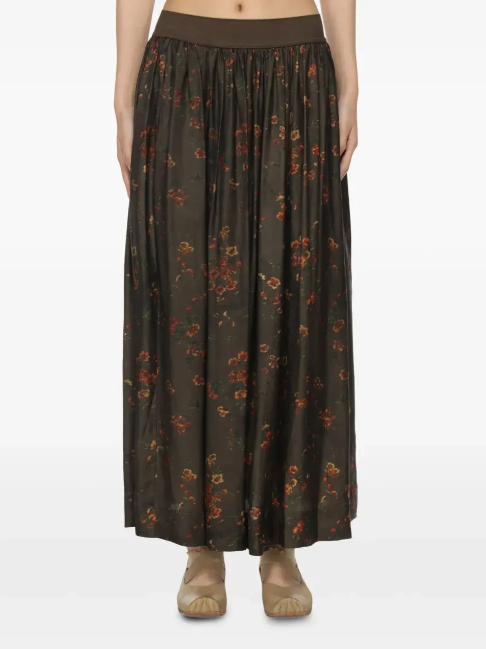 Gonna con stampa fiori all-over, vita elasticizzata